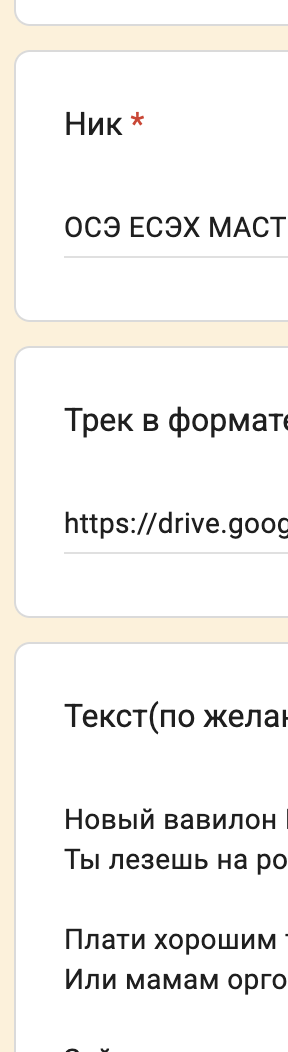>>1055672 (OP)На тему "Вход платный", 60 сек примерно, бит под старый трэп с тяжёлым басом. Сабзира впихнул естественно, как фанатский панч.