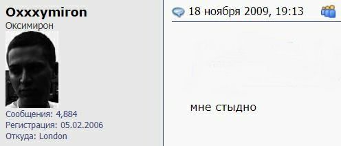 >>998108 Оксюморон писал, что пел в панк-группе в стиле рэнсид в 14 лет лол А еще смешную пасту писал про то как в 1 раз поебался что выпил бутылку водки в падике, пришел к тянке, у него не встал, он ушел и заснул в подъзде. Чет такое. На ххру был пост, у меня скрин валялся где-то. Оба поста ессно смахивают на малолетний пиздеж, но прикольно