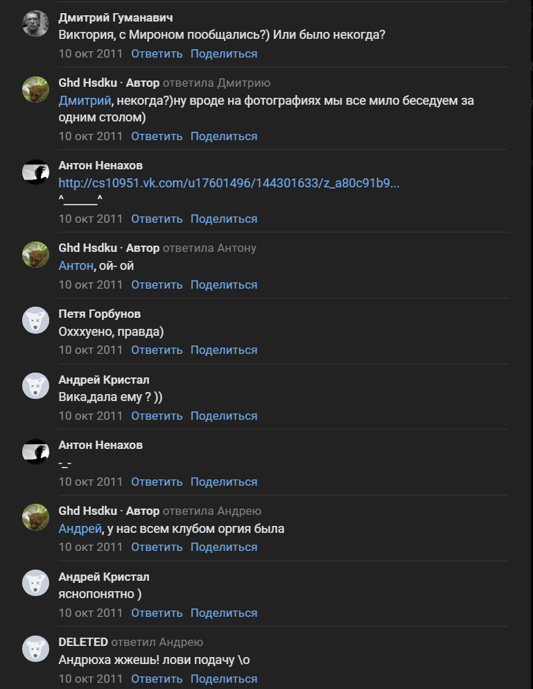 >>998741 Я прекрасно помню, что и кому он писал, кого трахнул и тд. Я вёл разговор за кучак, которой он потом кстати в 2011 написал прощальное и заблочил. А ещё есть скрины, где он ей комментики писал о том какая она хорошенькая.