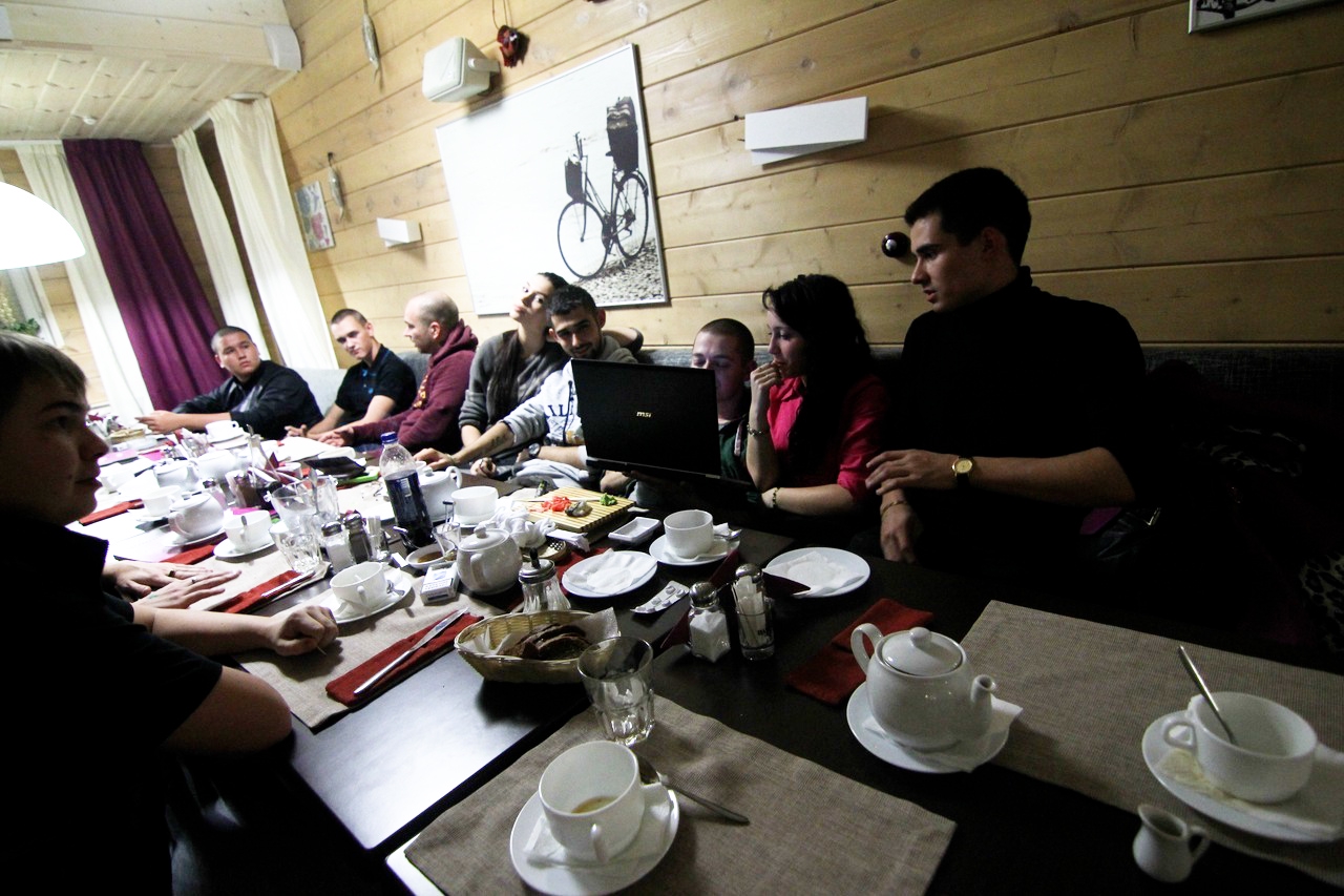 В КАФЕ КОСМОС ЗА СТОЛИК ТО И ДЕЛО ПОДСАЖИВАЮТСЯ ХУДЮЩИЕ ДЕДЫ В ВОДОЛАЗКАХ С ОГРОМНЫМИ КАДЫКАМИ, ВСЯКИЕ ДЯДИ ТОЛИ, ИЛИ ВАЛЕРЫ ВОРКУТИНСКИЕ. ГОВОРЯТ ЛАКОНИЧНО, СМОТРЯТ КАК НА ПРОПАЩЕГО ЧЕЛОВЕКА. МОГУТ ПОДСАДИТЬ И ДОБРОГО ВОРА, КОТОРЫЙ ОКАЗЫВАЕТ ПОНИМАНИЕ И «СО ВСЕМИ СЛУЧАЕТСЯ, ГЛАВНОЕ НЕ БЫКОВАТЬ СЕЙЧАС, ДОРОГОЙ» ВЕРОЯТНОСТЬ УВИДЕТЬ ЗА ТАКИМ СТОЛОМ УТКУ ПО-ПЕКИНСКИ ПРИБЛИЖАЕТСЯ К СТОПРОЦЕНТНОЙ.