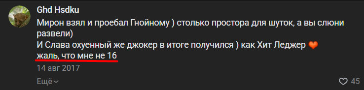 А если без стеба, то Мирону как-то непропорционально жестко прилетело. По сути накопали только 3 кейса и из них только одной не было 16, а секса с малолеткой не было ни одного (переписки стыд, конечно). А кармы сейчас огребет как за целый класс лолек.