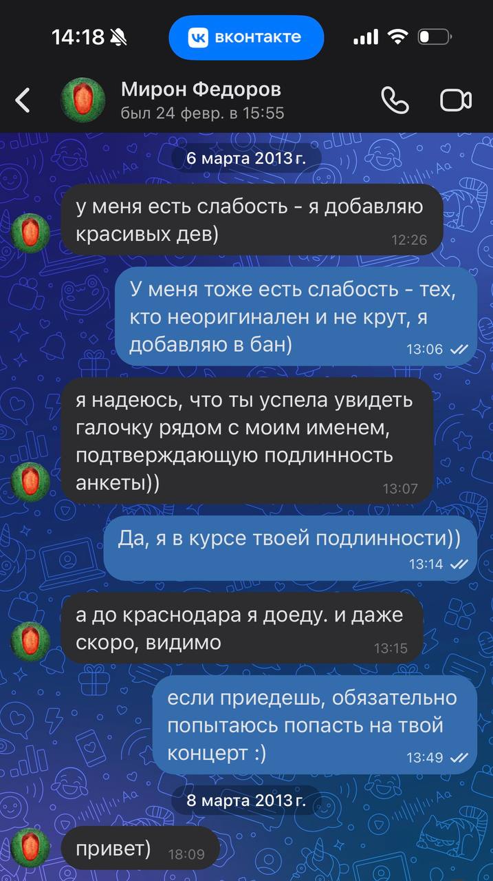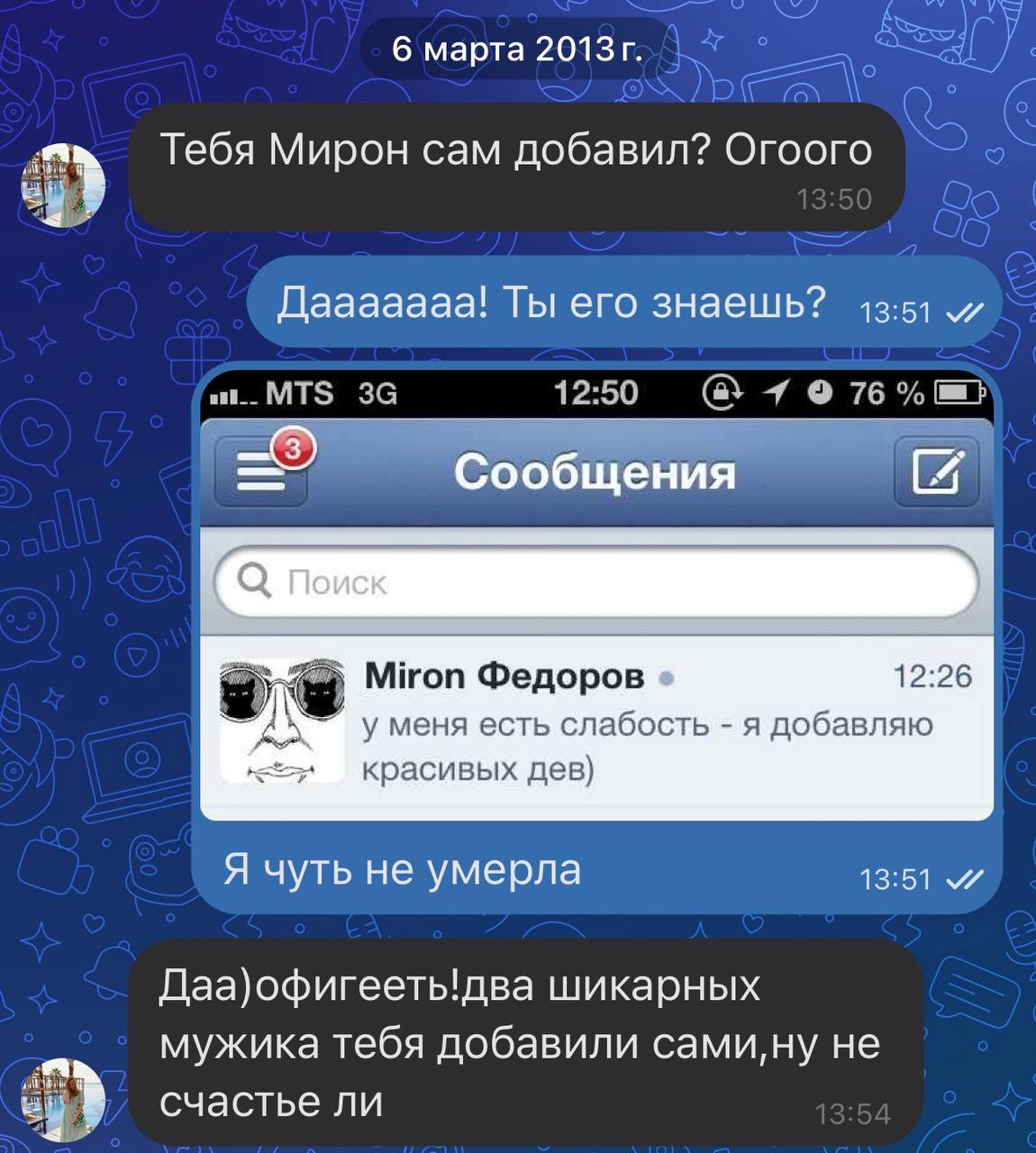 мимо бывшая фанаточка мирона, очень уважавшая его как артиста до сегодня