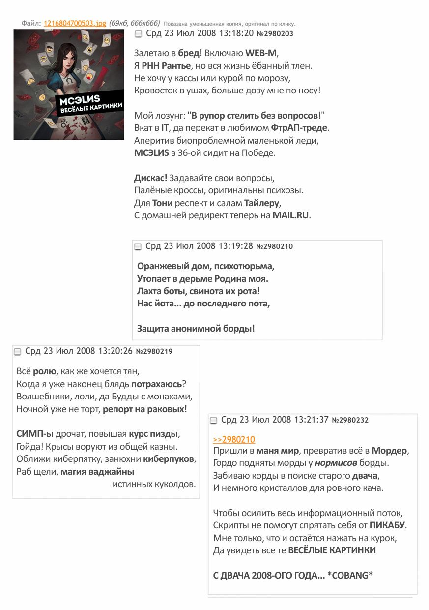 это всё конечно очень увлекательно и классно, букавки, слова, предложения, но какого хуя тойота и мц уздечка до сих пор на меге? a? НЕУЖЕЛИ НИКТО НЕ СЛЫШИТ, ЧТО ЭТО ОДИН ЧЕЛОВЕК ЕБ ВАШУ МАТЬ!!!