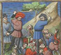 >>213863Очевидно, пятнадцатый. Да, Столетняя война: обратите внимание на знамёна. А вообще, подобная миниатюра связана может быть с чем угодно, пытаться изображать древних воинов как-то по-другому стали только в 15 веке, и то далеко не каждый раз. Вот тут рядом со святым Петром можно увидеть древних римлян в представлении художника из XV века.