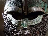 Шлем Эпохи Венделя с кольчужной бармицей. Извлечен из погребения Вальсъерде VIII (Valsgarde VIII). Датируется концом VI века - началом VII века. Относится к типу В2 по классификации Греты Арвидссон (с гребнем и бармицей).