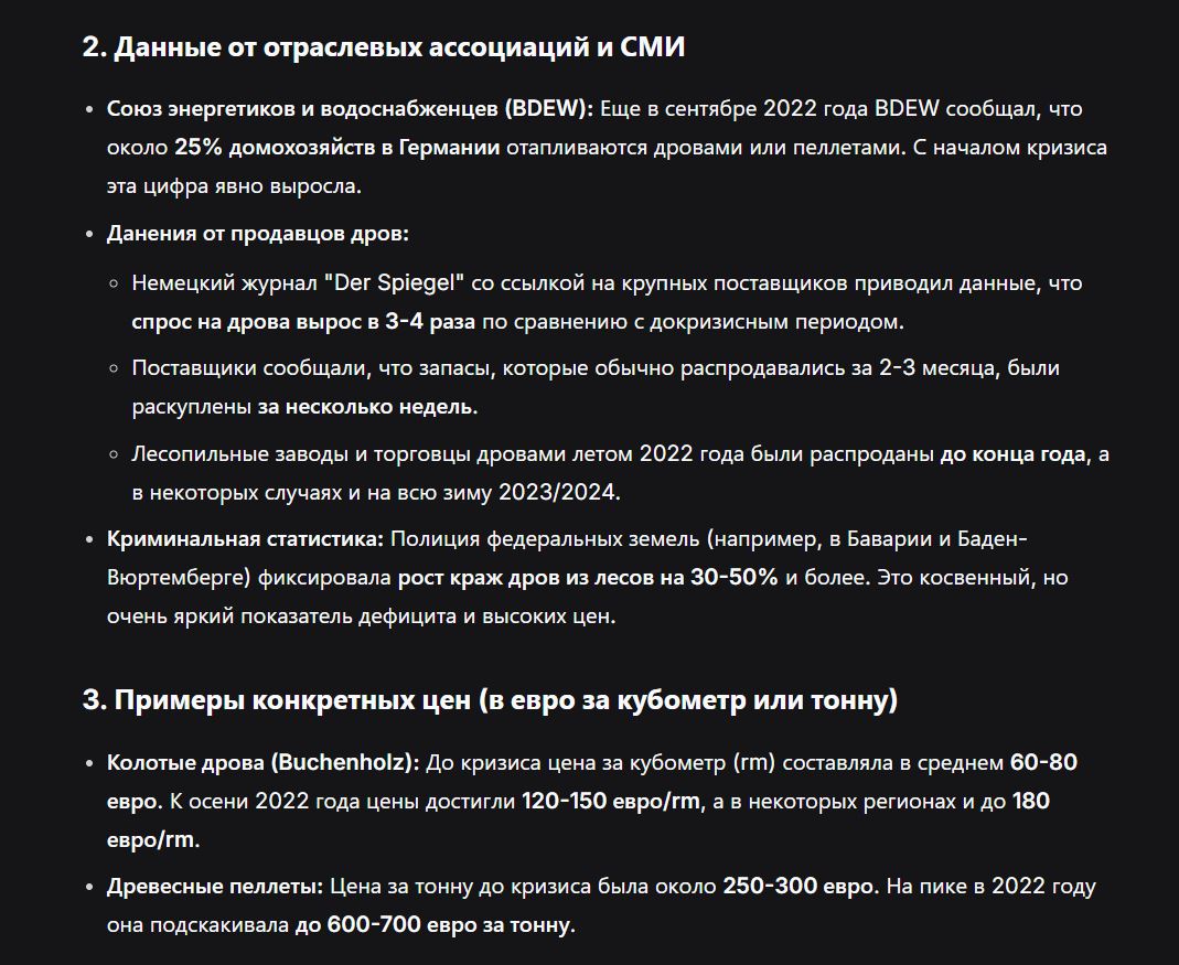 Про дрова в Германии. Это была острая реакция на войну и отказ от российского газа. Страна в одночасье лишилась дешёвого топлива, вот люди и бросились за дровами, цены взлетели. Это был кризис. Но кризис не вечный. Из-за него Германия стала быстрее переходить на зелёную энергию, выдала людям сотни миллиардов на компенсации счетов и за два года ситуация выровнялась. Это пример не нищеты, а как богатая страна справляется с внезапным ударом.