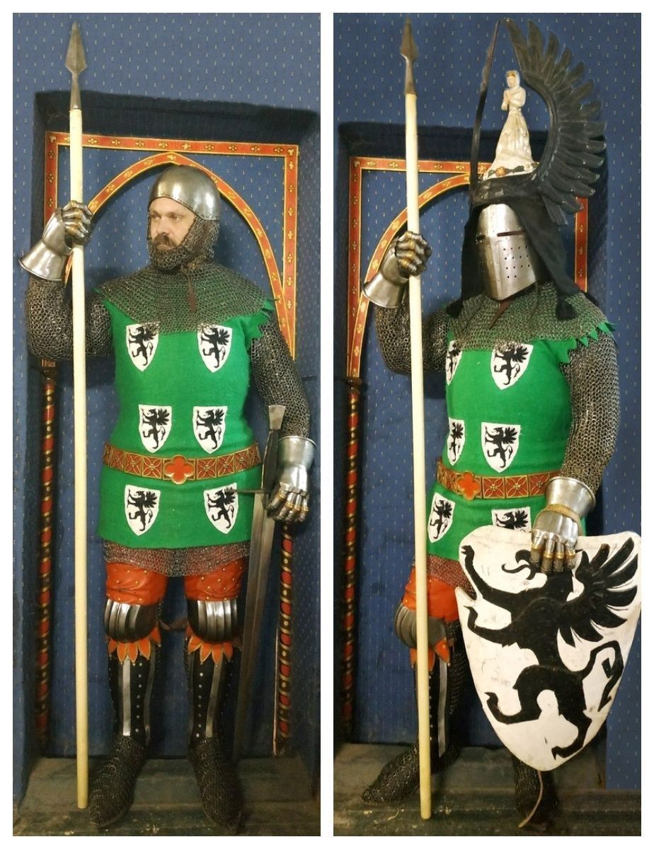 Наспинник и шлем хоть и являются предметами западного производства, но имеет следы грубых переделок совершенно не свойственных немецким и польским платнерам. По всей видимости наспинник был склепан из нескольких других, а шлем дополнен диковинной для готики чешуей наподобие рачьего хвоста. Это явная работа местных ремесленников. Судя по этому хозяином доспеха мог быть именно местный, литовский или даже русинский феодал, вассал Михаила Ижеславского.