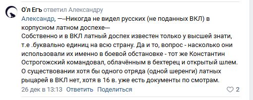 Любой российский историк-любитель военного дела Московии 13-17 веков (Кулешов, Комаров, Двуреченский, Пенской) ломается как честный историк на вопросе распространения европейских латных доспехов в ВКЛ в 15 веке среди православных русинов.