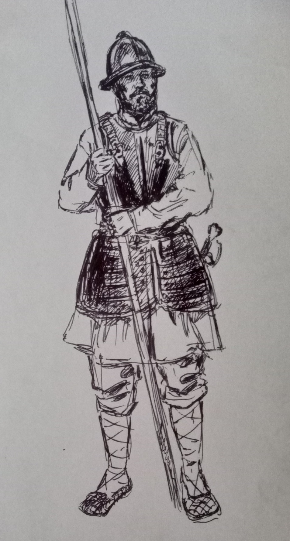>>1023736 Николай Фомин опять халтурно срисовал дворянина со старой реконструкции Олега Фёдорова, на которой изображен воевода Петр Лукомский времен Смоленской войны, у него единственного в его полку были " латы с шишаком и зарукавьями"