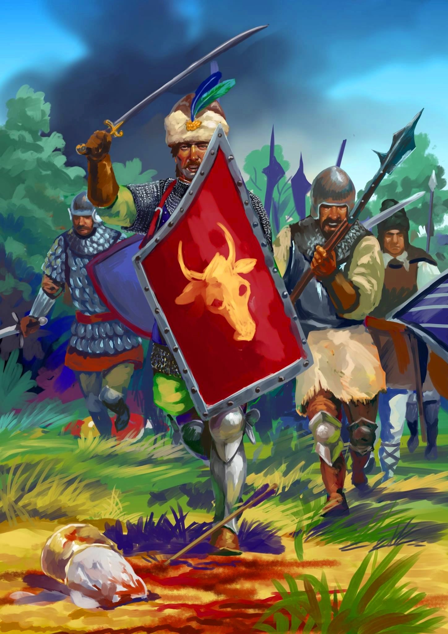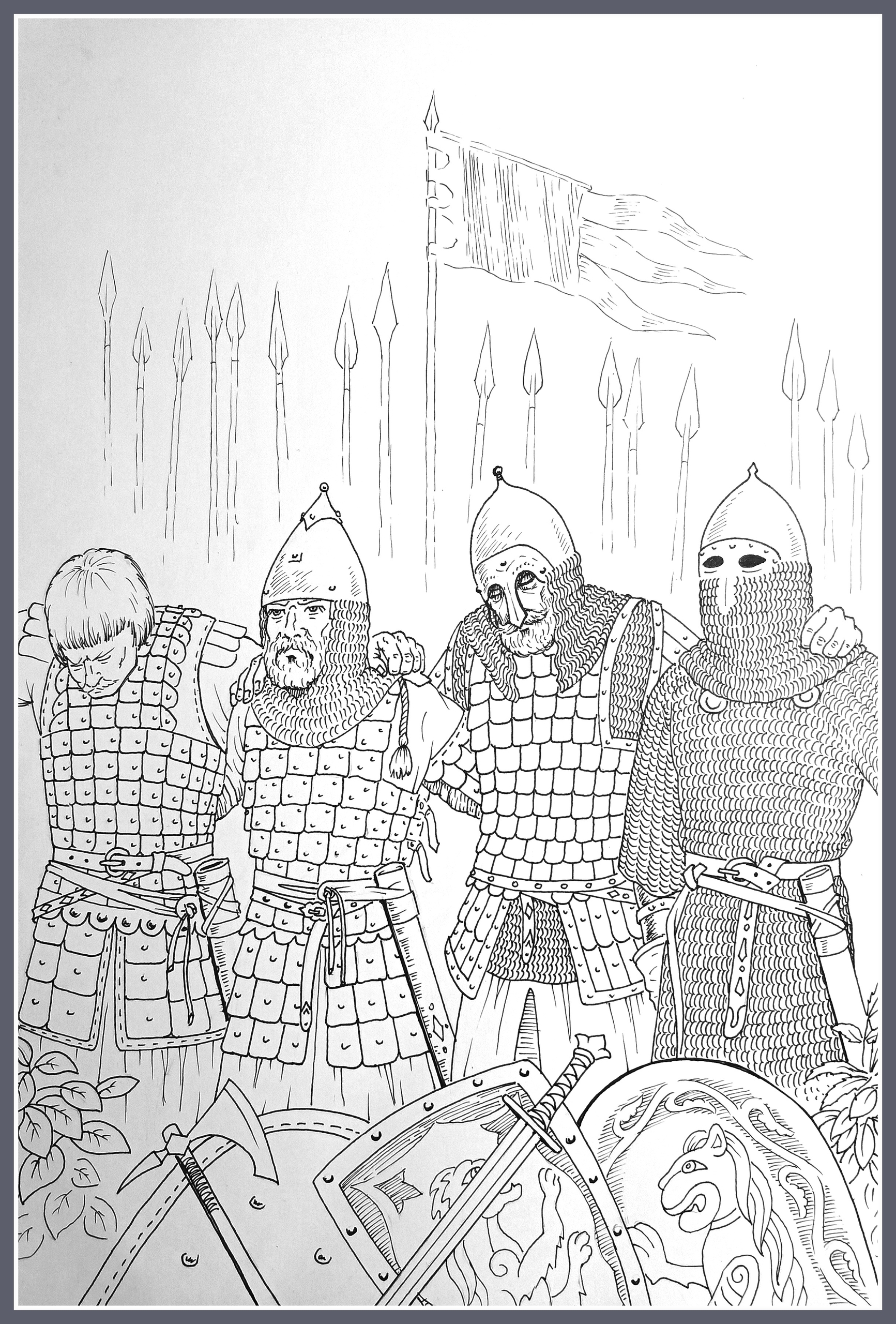 >>1023634 Дзись нарисовал русичей в иконописно-византийских доспехах смешанных с западноевропейскими латами. И он до сих пор считает что это у него самые достоверные реконструкции и никто лучше него не рисовал на эту тему. А на самом деле даже непрофессиональные художники-любители Красников и Шерстнев правильнее рисовали русичей. У Дзися фэнтези полное.
