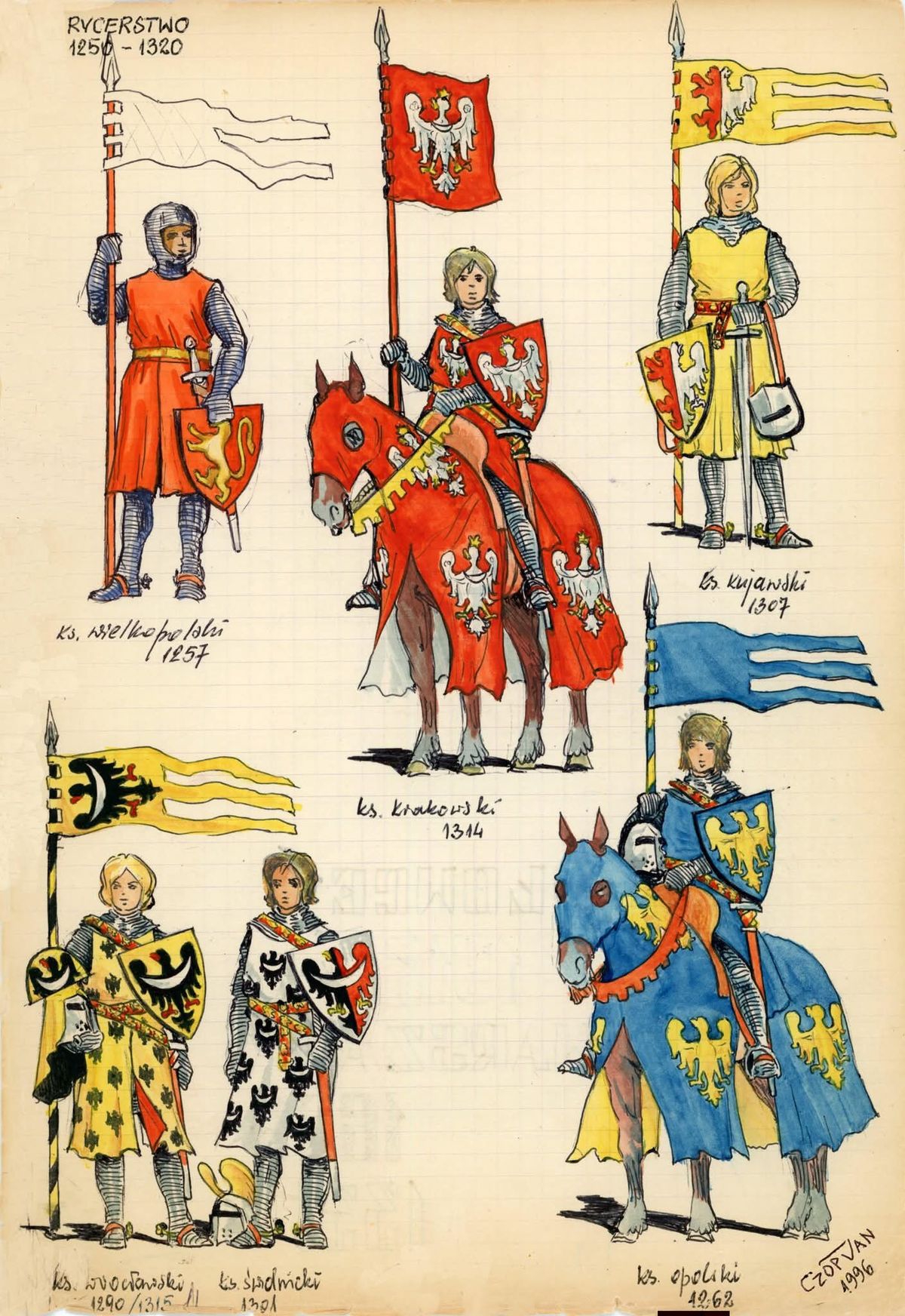 Между тем православные художники, оказавшись в католической среде быстро начинают отходить от религиозных канонов и добавляют в свои рисунки изображения реального рыцарского снаряжения, которые видят вокруг. Это хорошо заметно на фресках польских костелов, которые были расписаны по приказу короля Ягелло.