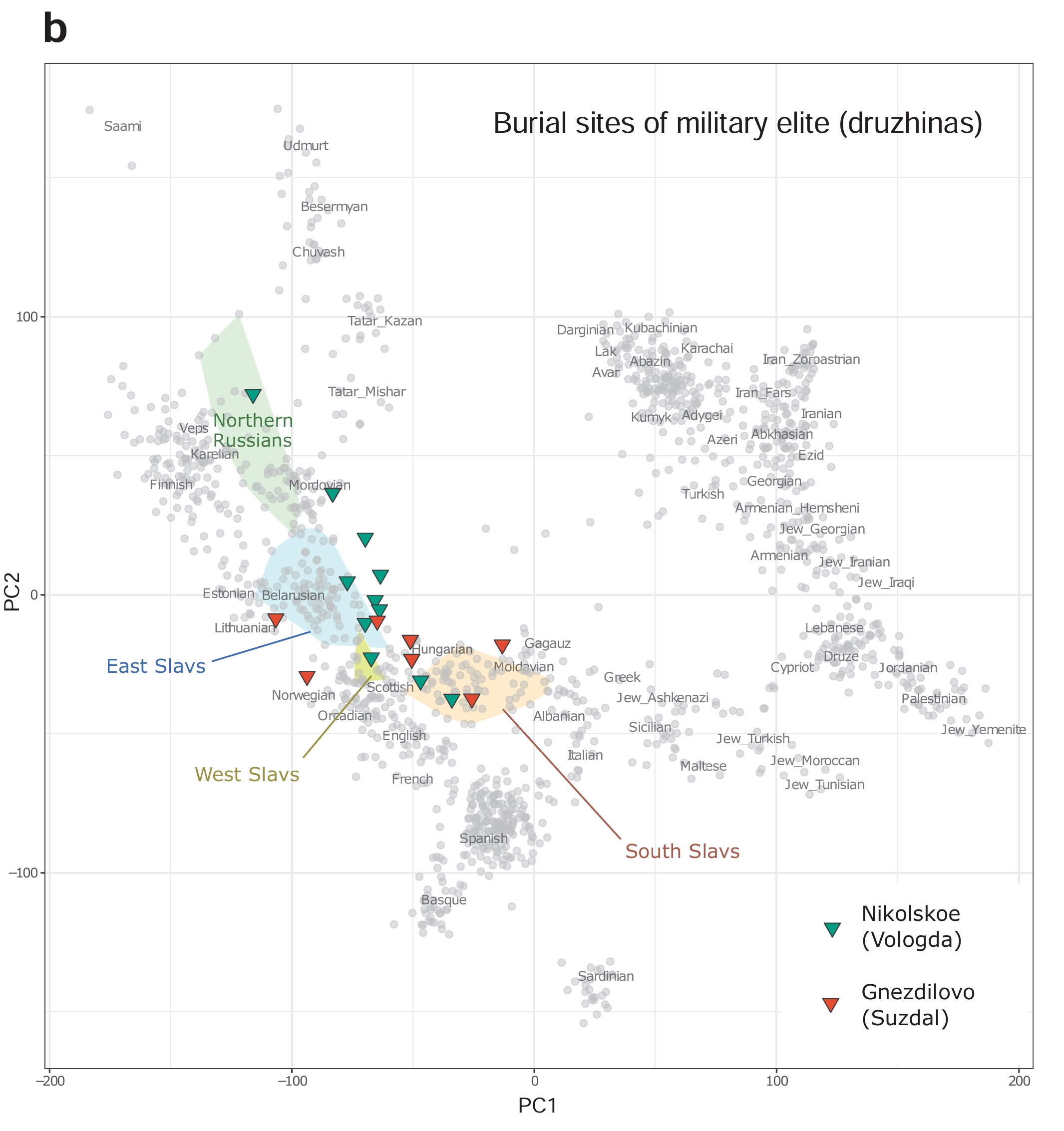 >In contrast, most individuals (81%) of the Ancient North Rus' genetic cluster belonged to Y-chromosome clade N1a(Supplementary Fig. 61), which is distributed throughout Northern Eurasia ... The majority of male individuals of the Northern Rus' community belong to the Y chromosome haplogroup N-FT68246 (N1a1a1a1a2a1a1a) ... The second lineage identified in the Northern Rus' region is N-Z35049 (N1a2b2a1a) ...