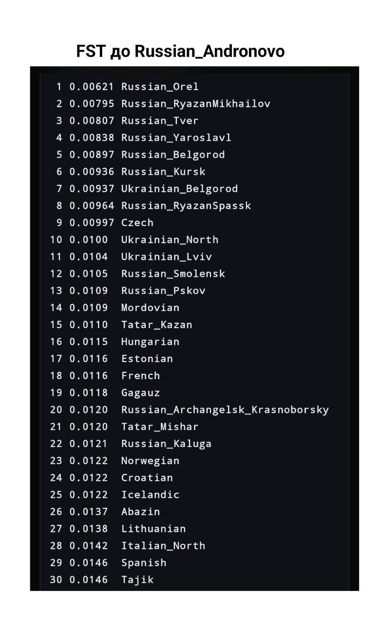 >>1022469 > Балтославяне смешались с так называемым балтским дрифтом Который существует только в любительском инструменте польского блоггера-недокодера Давидского, не имеющего с наукой ничего общего. Попробуй найти информацию о своём мифическом "балто-славянском" дрейфе в каких нибудь реальных научных статьях. Там этого нет, и не будет. При чём ты отвечаешь этим высером (Govno25) на результаты из реального научного академического инструмента созданного реальными учёными с реальными именами в сфере науки и с реальными учёными степенями в Гарварде. Забудь про свой коуп25, это мусорный устаревший инструмент, недостатки и убогость которого уже больше невозможно игнорировать. > То есть в среднию Азию вторглись люди отдаленно скорее похожи в первую очередь на скандинавов Могу поспорить что ты сам нихуя не скандинав, не понятно зачем ты решаешь вдруг начать за них копротивляться, возможно балто-славяне тебя чем то обидели или оскорбили на национальной почве. Врочем твой высер недалеко от истины, балто-славяне и германцы действительно похожи между собой как генетически так и внешне. В отличии от мамбетов и кавказни, которые не просто не имеют ничего общего с реальными Ариями, но не имеют ничего общего и с любыми другими цивилизованными народами из любой эпохи в истории. А теперь смотри реальные научные FST дистанции от реальных Ариев бронзы до современных популяций.