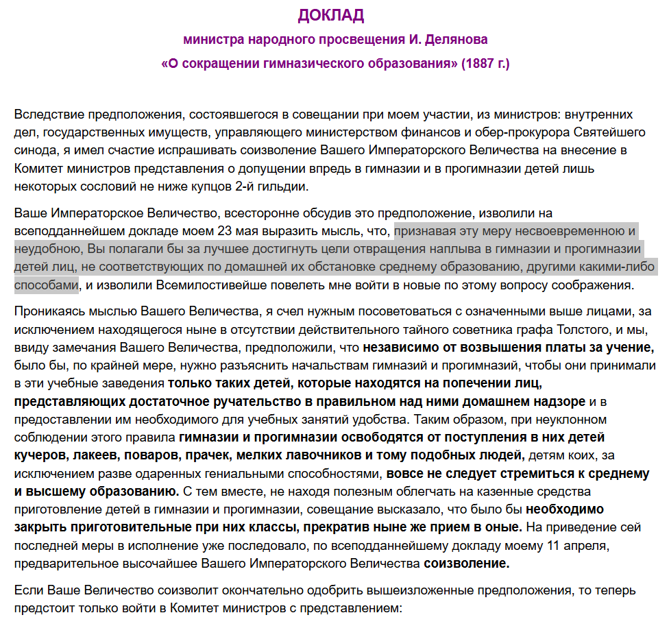 >>1023202 >циркуляр о кухаркиных детях Никогда не понимал визга советских по поводу этого доклада. Что плохого в том, чтобы не пускать маргиналов в заведения общего образования? Это, между прочим, был конец XIX века, тогда среднее образование во всей Европе было всего у нескольких процентов людей.