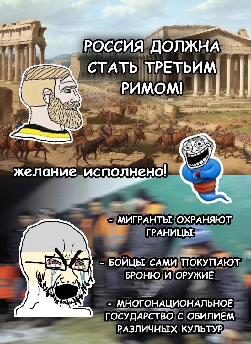 >>980116 Централизация, политическая устройство, военная мощь. Именно под влиянием Орды Русь стала сначала централизованным государством, а затем сильнейшей империей Евразии, которую никто не смог поставить на колени. Петр Первый добавил к военно-политическому ордынскому устройству научно-технический прогресс. С тех пор Россия непобедима, запускает в космос спутники и строит атомные электростанции. Несомненно именно из России вырастет Империум Человечества, что бы там не хрюкали русофобы.