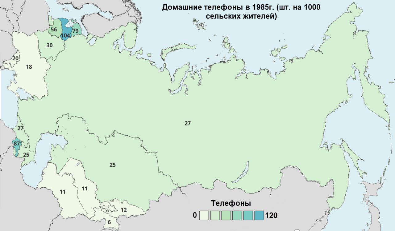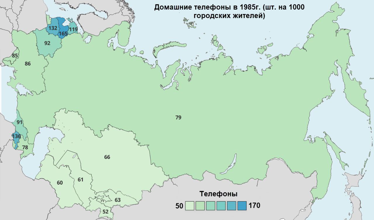 Лучше всех, понятное дело, с телефонами обстояло в Прибалтике, причем в прибалтийской деревне обеспеченность даже лучше чем в городах многих союзных республик.