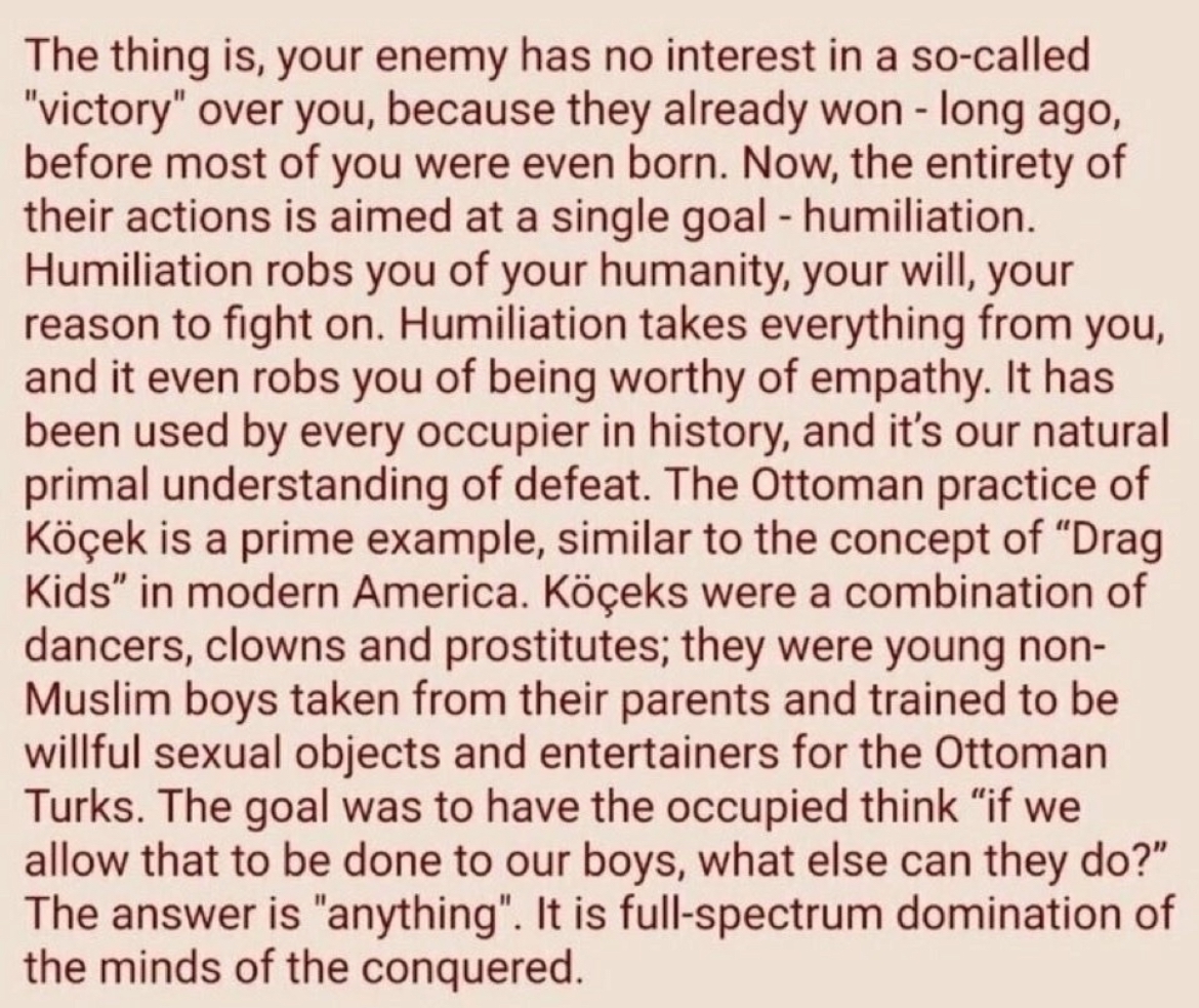 >>979643 (OP) Германия училась на примерах. Успех Вермахта - Испания, успех геноцида - Турция. Не важно, сколько ты убьешь, важно - кого ты убьешь. Важно, на кого будет похуй всем остальным. Геноцид армян, как и геноцид славян, еврее и прочих унтерменшей, осуществлялся не столько главной нацией, не столько немцами и хохлами, сколько хохлами и курдами. Первые делали так, чтобы вторые их убивали. У первых было желание, но было и желание сделать это чужими руками. Вторые делали это откровенно, положившись на свою защиту от первых. Сейчас мы видим их взаимодействие (хохлы = фашисты, и доброжелательны к немцам, курды враждебны, но так же виновны). >>981922 Там были различные секты, типа нео-платоников суфиев, чье название не от бушлата, а от греческого "софия". Это гностическое учение, что мир есть зло, что люди - зло, и только избранные обладают благодатью, поэтому они должны уничтожить остальных людей, чтобы спасти весь мир. Это буквально сатанизм, который поднимает голову и в католичестве. Мир не идеален, он изначально сотворен злым, поэтому мир погибнет, и мы его убьем, а потом будем пановать с ангелами на на небесах.