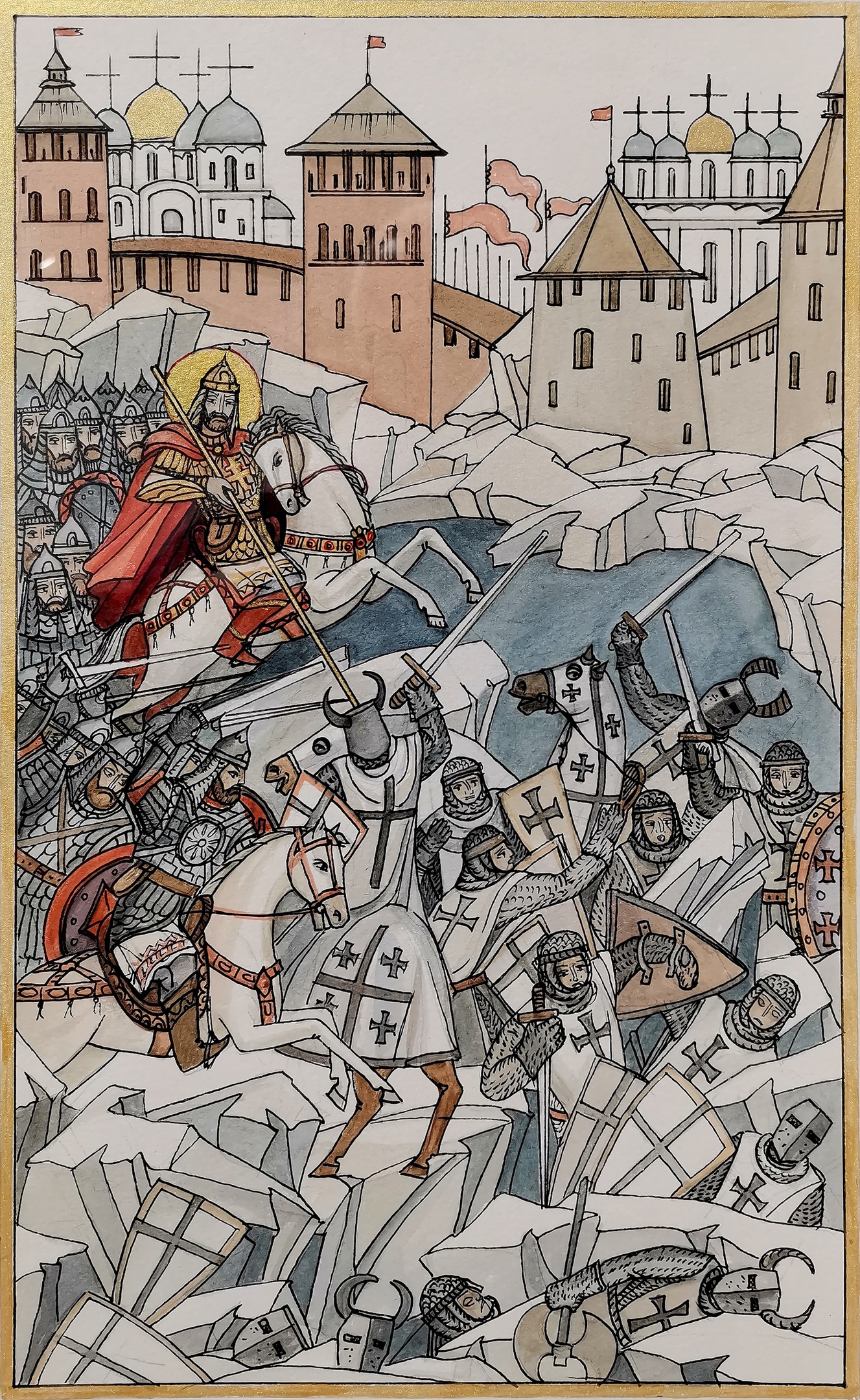 Ну, а сколько было русичей — вряд ли о том кто и ведал доподлинно. По тем временам по тогдашнему населению городов огромная то была рать! И мужикам, сошедшим из укромных маленьких деревень, вообще казавшаяся безмерной! Впервые со времен уделов, со времен Мономаха почитай, впервые собиралась на Руси воедино такая громада войска! Тут, как ни считай, и двести, и четыреста тысяч сказать мочно — глазом не обозреть!