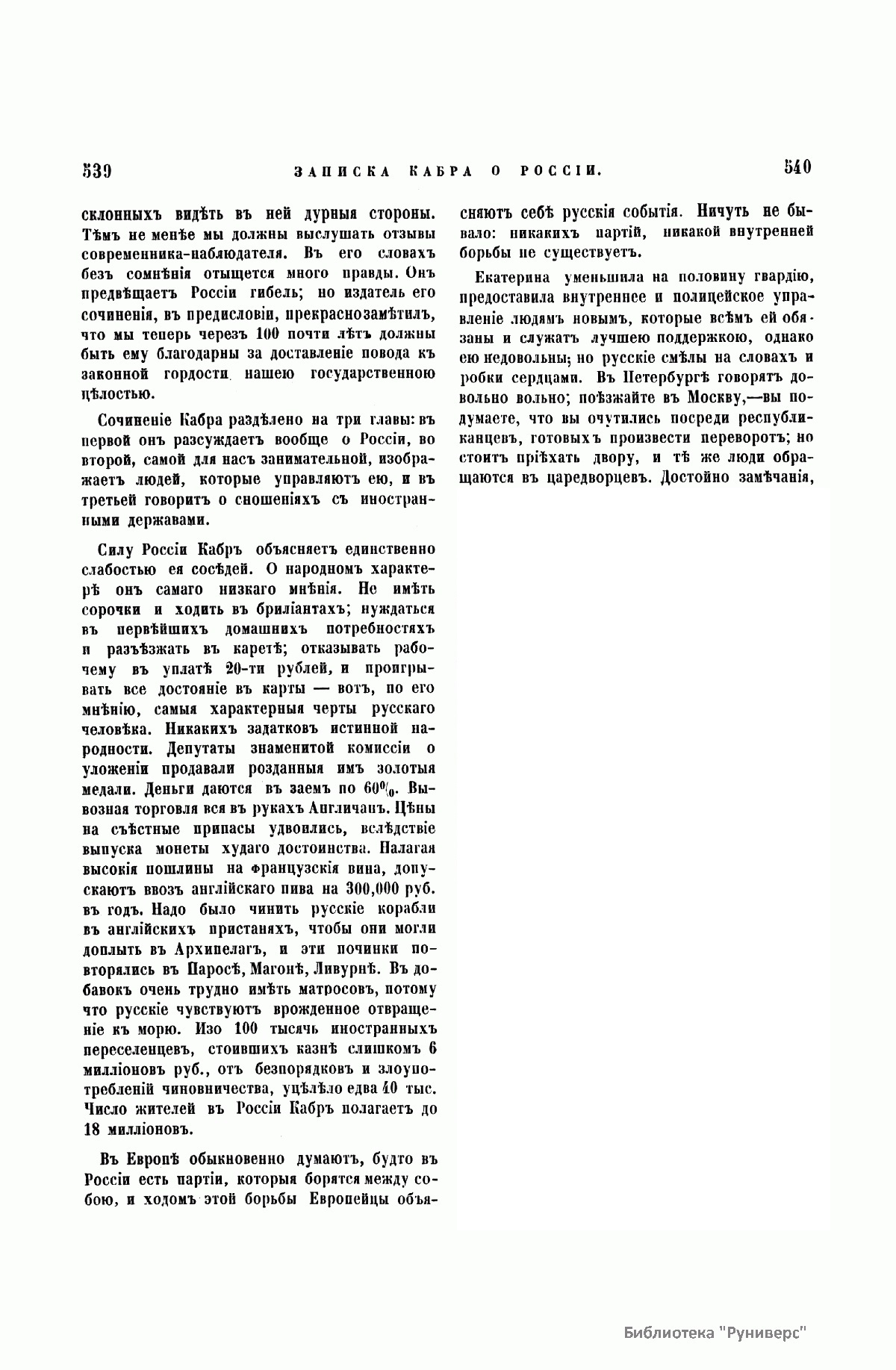 Нация, которая прежде была столь же варварской, какими были наши предки до крестовых походов, за последние сто двадцать лет вышла из невежества… Я говорю о России. В этой стране создан обширный класс образованных людей, которые достойны занимать самые высокие должности… Есть повод надеяться, что эта обширная империя, которая во времена наших дедов, вероятно, отставала от Пенджаба, при наших внуках догонит Францию и Британию на пути совершенствования (Macaulay 1862: 109-110 ).