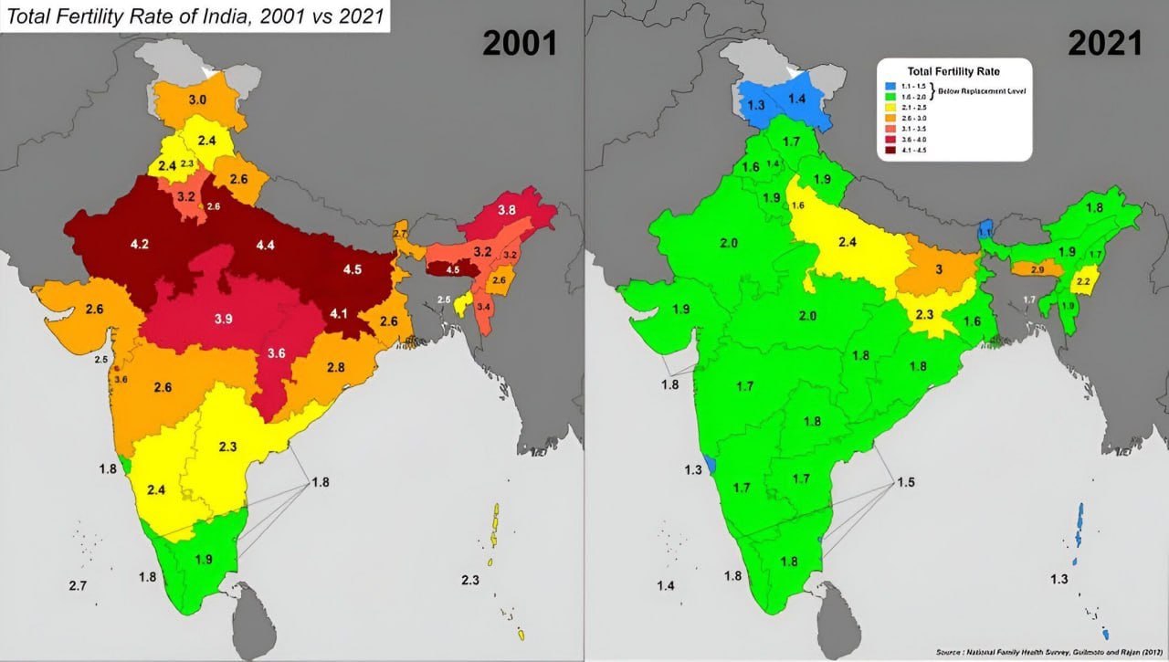 >Увидел, что в Иране в 2025 году коэффициент рождаемости упал до 1,44 ребёнка на женщину (как в России, где он 1,39). А в Тегеране – до 1,15 (!) (такого низкого уровня рождаемости нет даже у нас в Москве). Это показывает, что в Иране складывается современное городское общество.