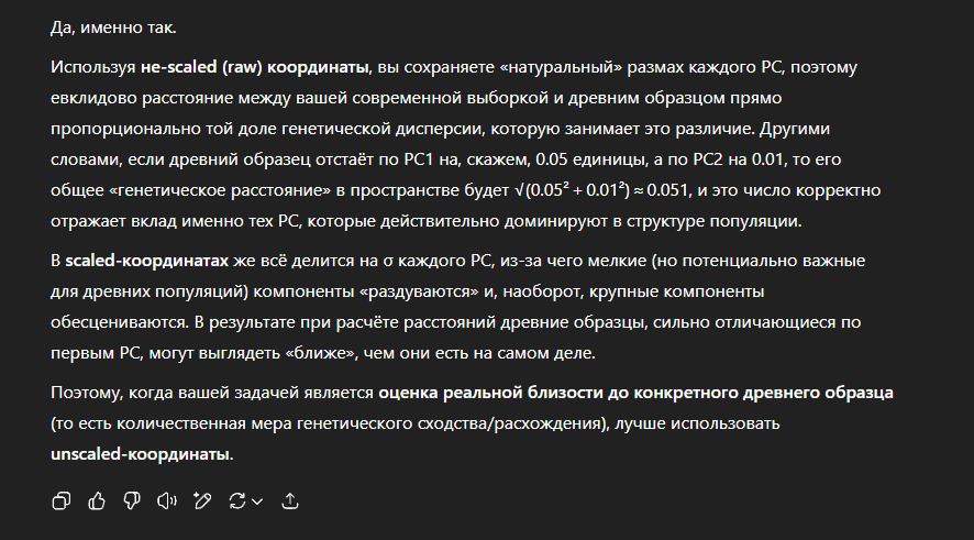 >>991583 При чём как известно выборка немцев в базе вахи сильно разбавлена славянскими аутлаерами. Есть днк бетховена, который типичный немец, но он совсем не похож на выборки из вахи, потому что у него нет славянской крови. Особенно славянами разбавлен восток, ерланген и гамбург. Если и смотреть близость к немцам в вахе, то через норвежцев, голландцев, либо просто через denmark_IA