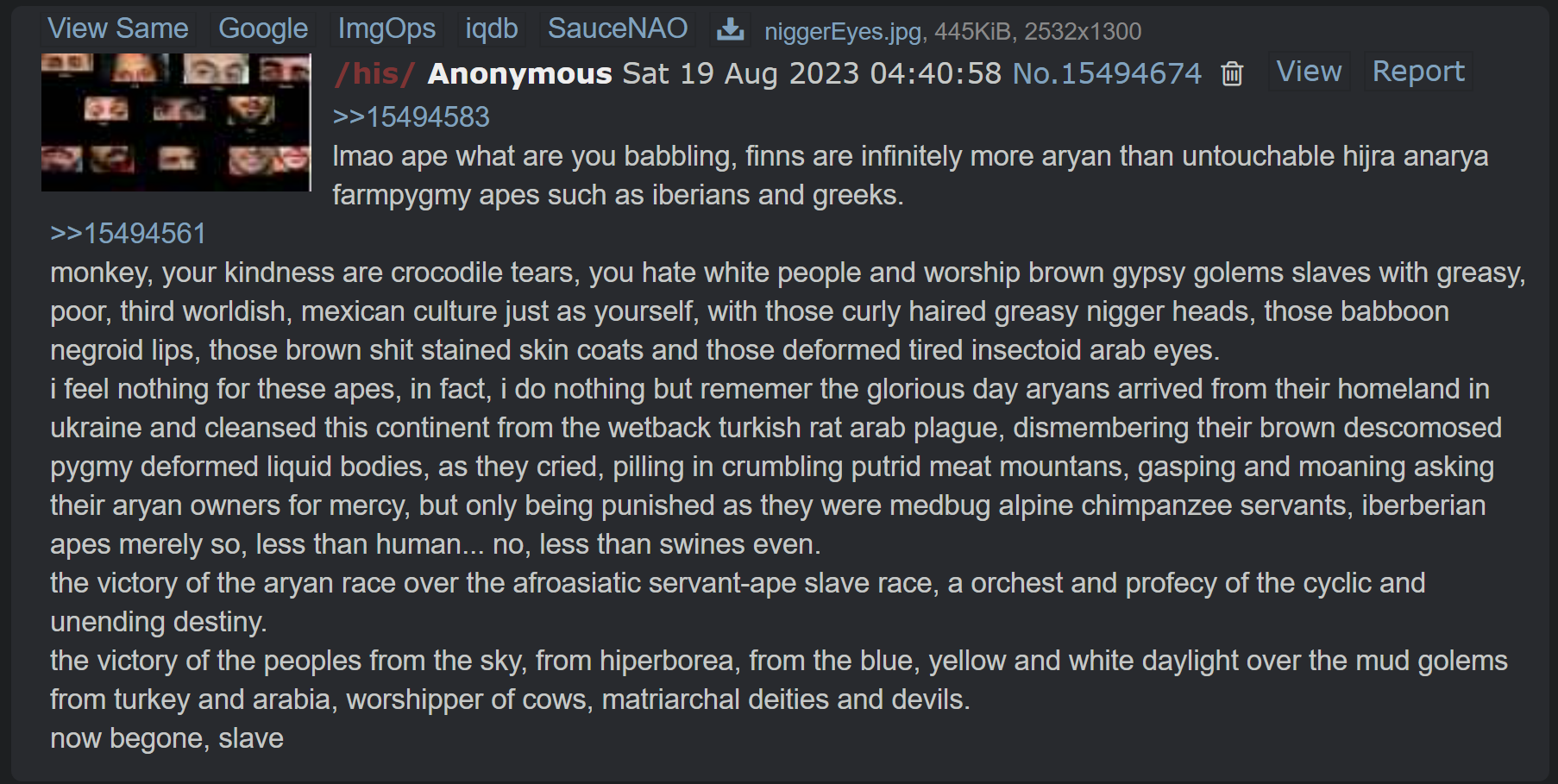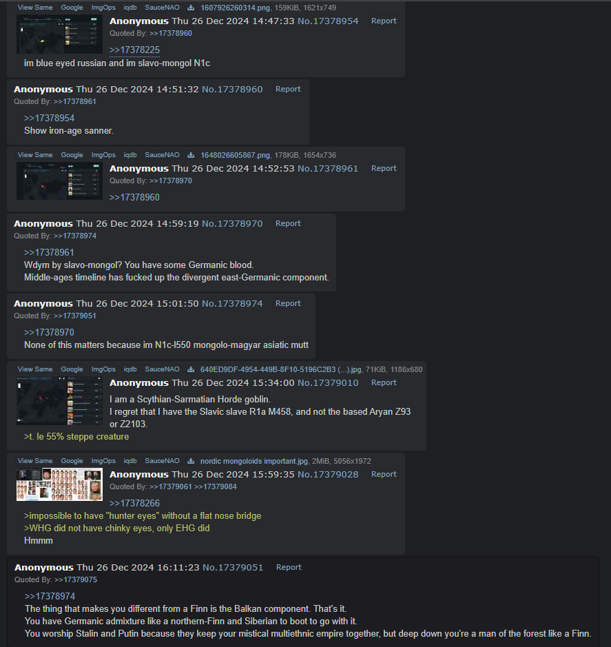 Every white person, be it German or Finn, seeing Ilya will immediately experience a gag reflex, seeing his dirty slanted shit-eyed Russian-Slavic Ryazan snout of Stepashka the fool. Already hundreds of people on forchan under different flags have told Ilya that he is a Russakok from the Chamber of Weights and Measures, with the "extreme Russian" appearance of an eternally serf peasant with a potato shapeless schnobel. His genetic test fit him perfectly into the sample of so-called Russians, with a clear Turkic-Mongolian signal.