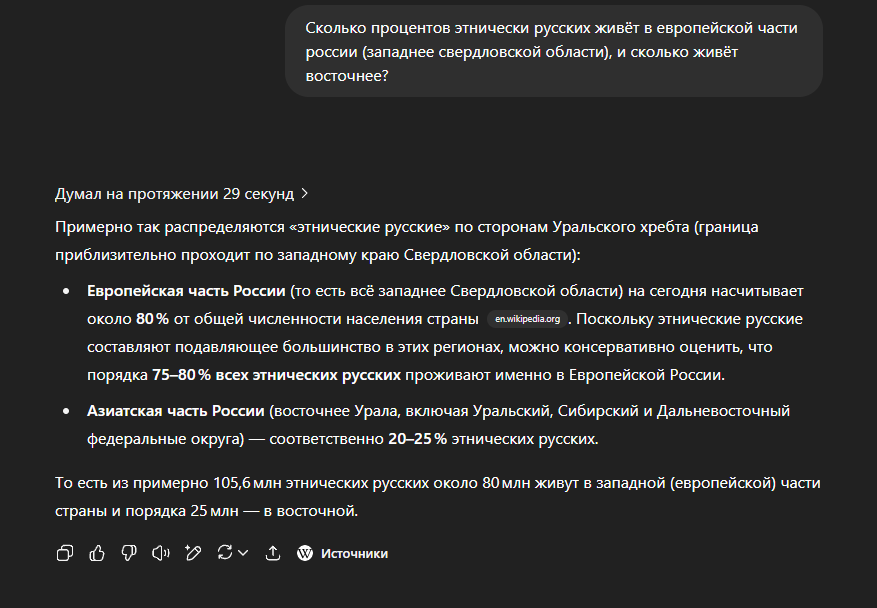 >>992252 Чтобы ответить на этот вопрос, чат гпт использовал минимум 16 источников из разных сайтов, скачал какую то сырую статистику из какого то реестра, написал скрипт и при мне рассчитал всё как есть