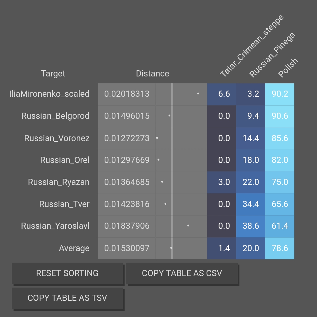 Попробовал первый раз вашими этими инструментами попользоваться и взял данные Илюхи из треда. Что-то я не понял, я что-то не так делаю или Илюха какой-то непонятный мутт, далёкий от восточных славян?