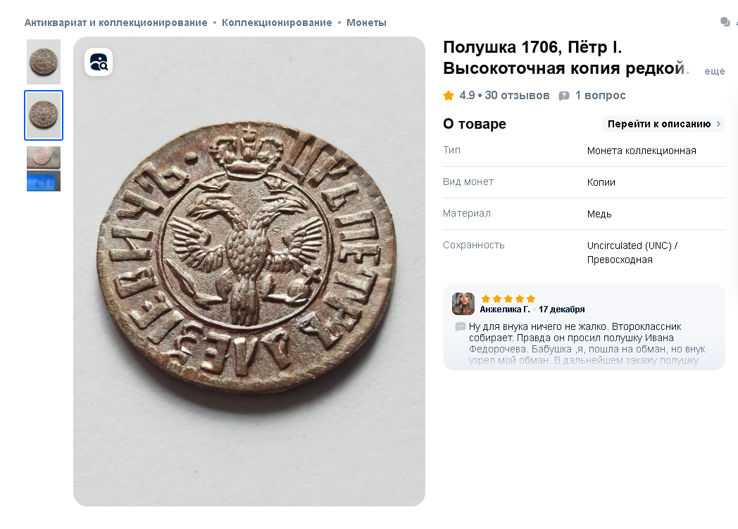 Я читал что сейчас подделка чешуи дошла до абсурда. Появилась куча фэнтезийных монет, выдающихся за настоящую удельную чешую. Китайская мразь не дремлет. Наши умельцы тоже дают прикурить, кто-то ходил и разбрасывал фэнтезийную подделку по местам копа, чтобы таким образом легализовать ее.