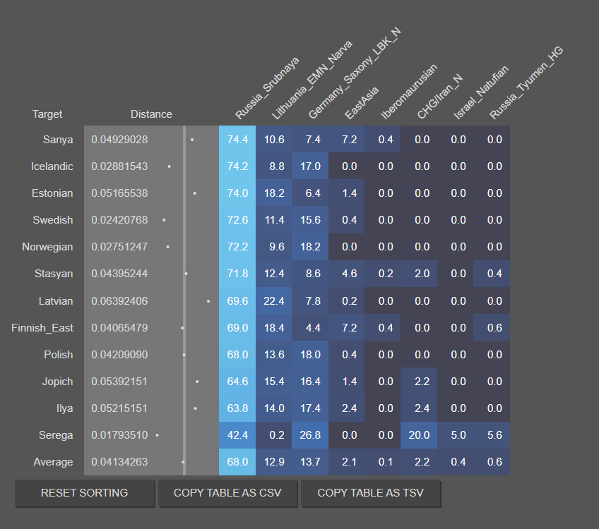 >>994086 Илюстративка это наеб гоев, но у меня там самая низкая дистанция, +70% синташты в модели и 39% прото германцев. Но это наеб гоев вот реальные координаты с вычетом дриста>>994085
