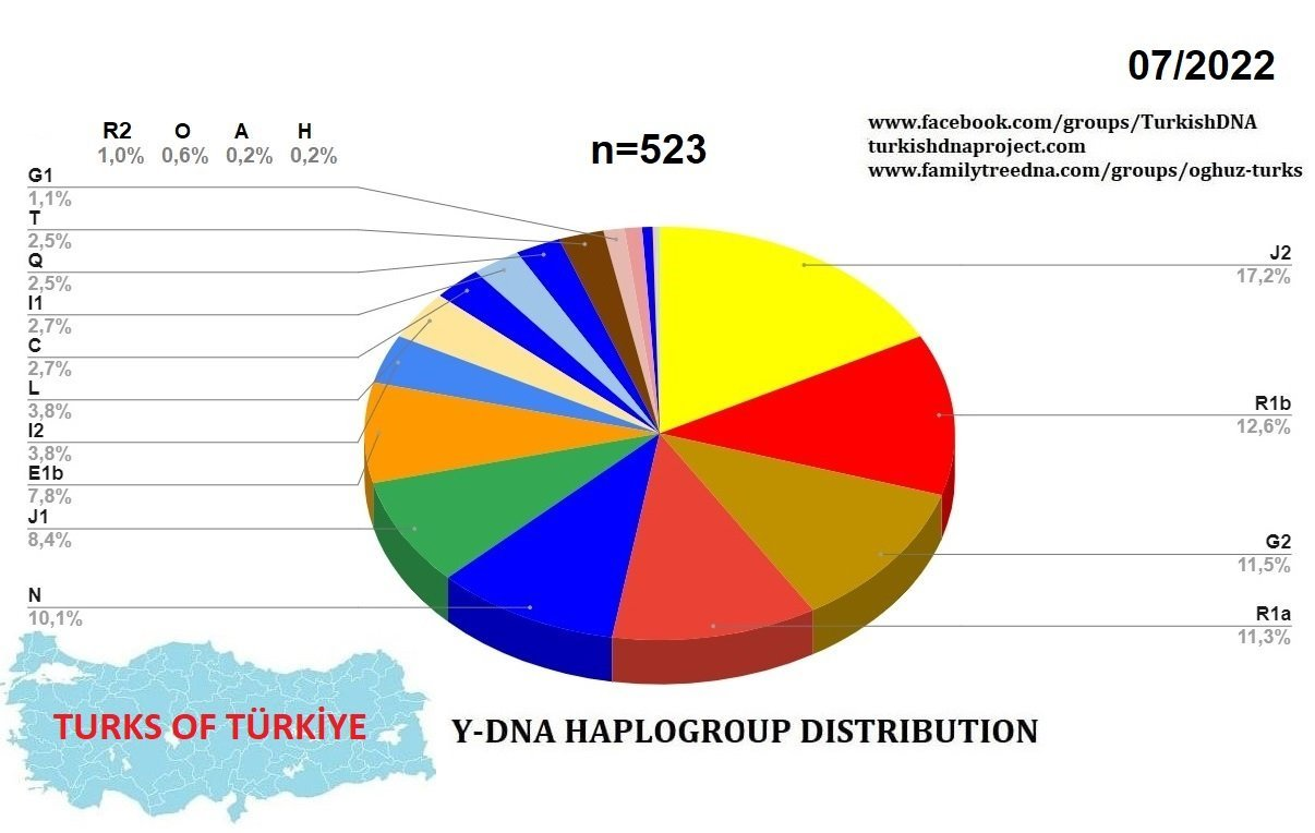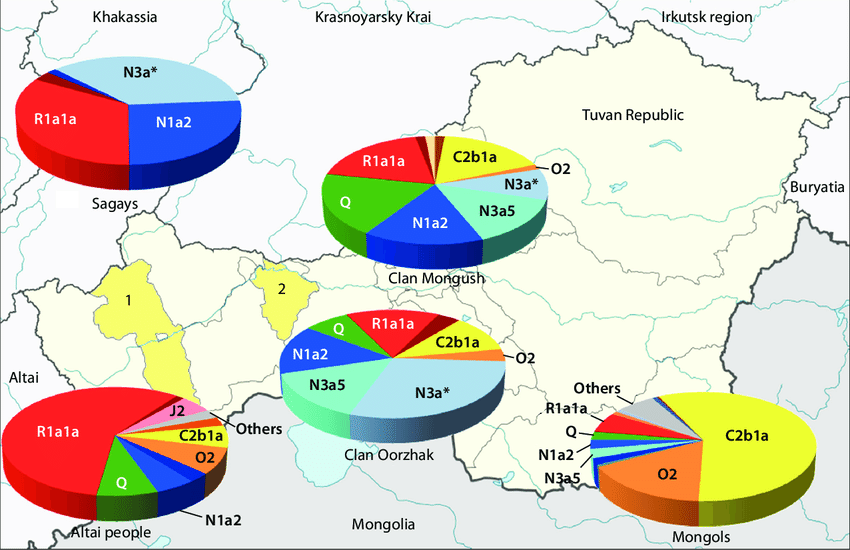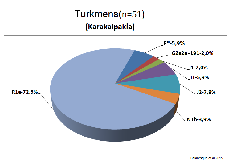 У восточных туркмен R1a больше чем у киргизов к слову. У других в основном Q. Нетрудно что R1a и Q скорее всего достались им от одной культуры, но пиздоглазый свин продолжит называть Q монголоидами.