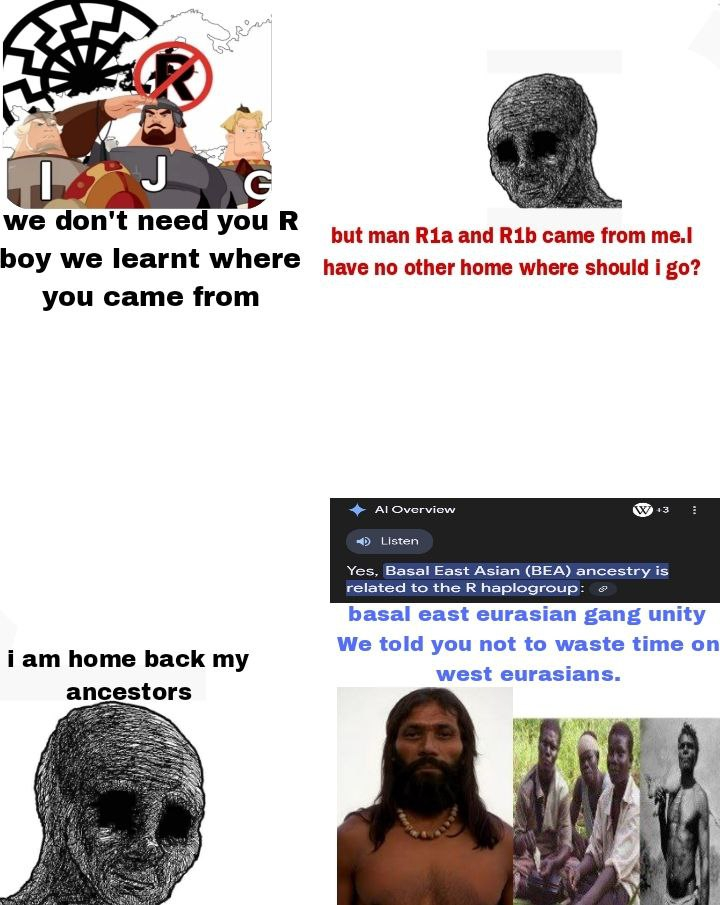 >>995313 Всё так. ANE говниксы были на треть тяньюяньскими онге папуасами, от которых им досталась эта гапла. Гапла R и Q по определению не белые и не западно-евразийские по своему происхождению