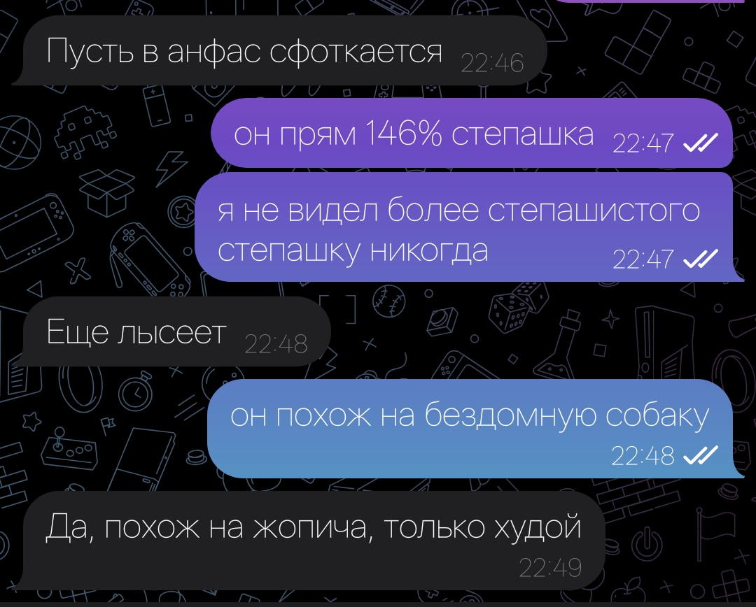 Аноны кто можешь сказать почему Илюха начал меня оскорблять? Я же его никак не трогал и мы с ним нормально общались, а он просто взял и на ровном месте испортил наше общение, странный какой то.