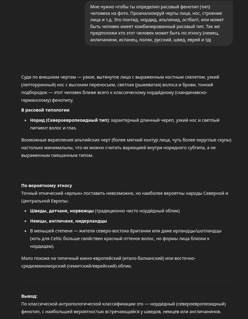>>995970 А ты какой-то промпт перед этим юзаешь или чисто так вкидываешь? А том я попробовал со своими фоточками, он мне постоянно вкидывает что это мол "устаревшие понятия", "эта вся хуйня ненаучна, но раз просите то сделаю".