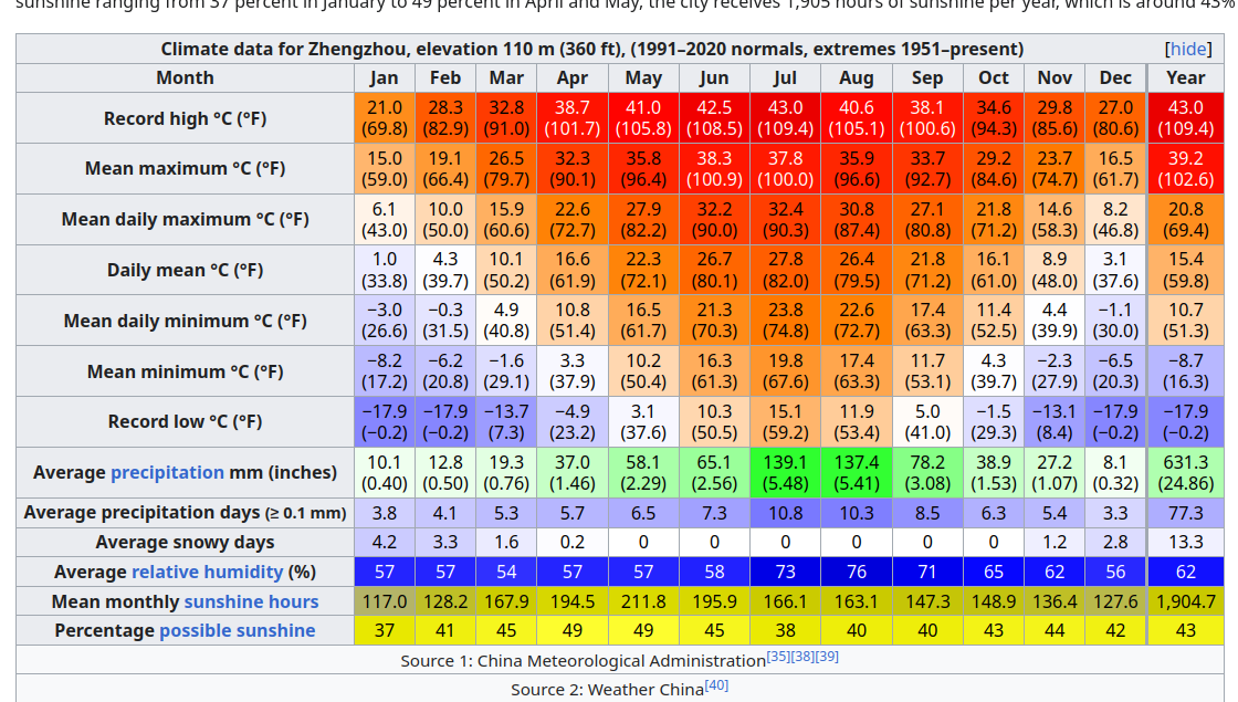 >>997268 >Указан просто температурный максимум самого тёплого месяца. Там ничего про это не сказано тоже. Там просто high и low. Вообще про максимумы нет. Поэтому я это интерпретирую как average high и average low, как часто указывают на английском по климатическим условиям. >Потому что блядь, если это среднесуточные показатели, то отрицательные температуры зимой в таких местах как Балканы, Анатолия, и Иберия, центральный Китай, Япония это нихуя не среднесуточные явления. А скорее ночной заморозок. Давай посмотрим опять. В Японии на Хонсю в основном горные территории где указаны низкие температуры. Саппоро - отрицательные есть. Но давай возьмём южнее и на Хонсю. Там также есть например в той же Фукусиме. Да, безусловно это очень небольшое значение, но оно присутствует в статистике. В Анатолии присутствует континентальный климат. В той же Анкаре есть средние минимумы ниже нуля. По Китаю опять же континентальный климат также нет тёплых активных течений. Давай возьмём Чжэнчжоу. Средние температуры ниже нуля также присутствуют. Иберия, также есть смотри скрин. Однако, тут я не прав в том что среднесуточные выше нуля, но прим этом в целом средний минимум ниже нуля. Так что ты прав, карта не по среднесуточному похоже, а по усреднённым минимумам за года. По Балканам в том же Белграде по усреднённому минимуму тоже отрицательная температура есть.