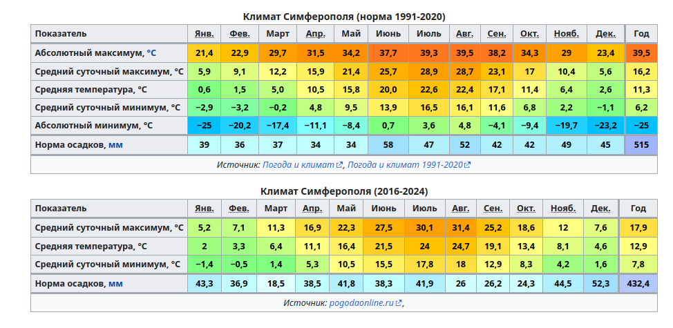 >>997318 Это ты коупишь. Я тебе привожу реальное соответствие данных и положений на карте уже не раз. Ты просто пытаешься опровергнуть это стоковыми картинками. И если ты не заметил тонкая часть побережья у Крыма на карте в категории neither. >В Крыму почти нигде нет среднесуточных минимумов. Ты не думал, что они могут данные не с вики брать, а из другого места? Я просто привёл примеры из вики, так как у меня к этим данным точно есть доступ, ходить далеко не надо. И на вики в большинстве случаев есть средние минимумы и средние максимумы. К слову о среднесуточных, выше я уже в одном посте правился, что они похоже не среднесуточные именно используют, а просто средние. Вот тут >>997272 в примерах с английской вики есть среднесуточные и просто средние.