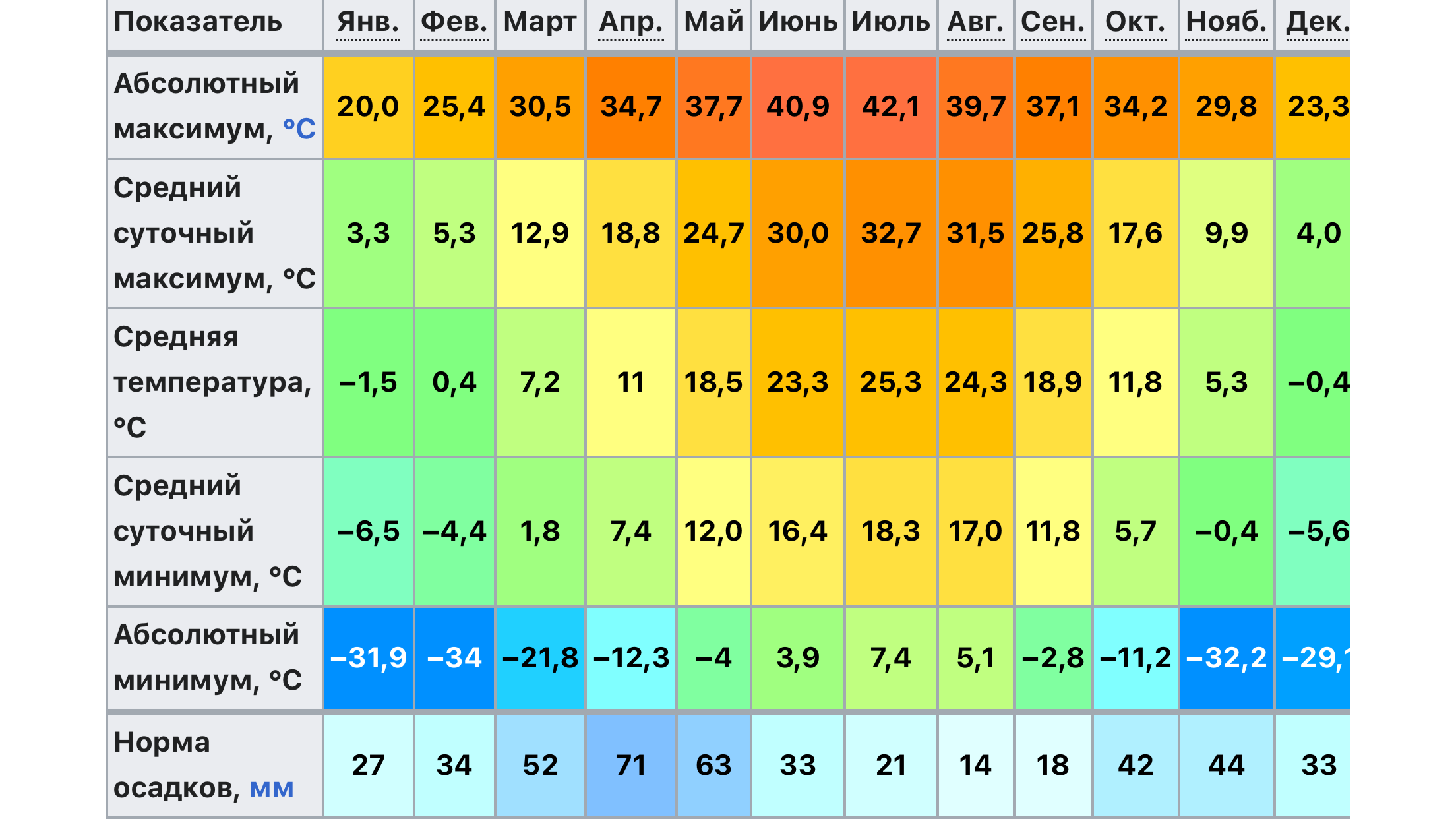 >>997265 >Евразии >Вероятно она преобладающая, между 35 и 55 параллелями северной широты уж точно. Ок, давай посмотрим. Например возьмём Костанай. Среднесуточный максимум не выше 30 градусов. Несколько южнее Караганда там также нету 30 среднесуточного. Глянул восточнее Читу, там тожет нет выше 30 градусов по среднесуточным максимумам.