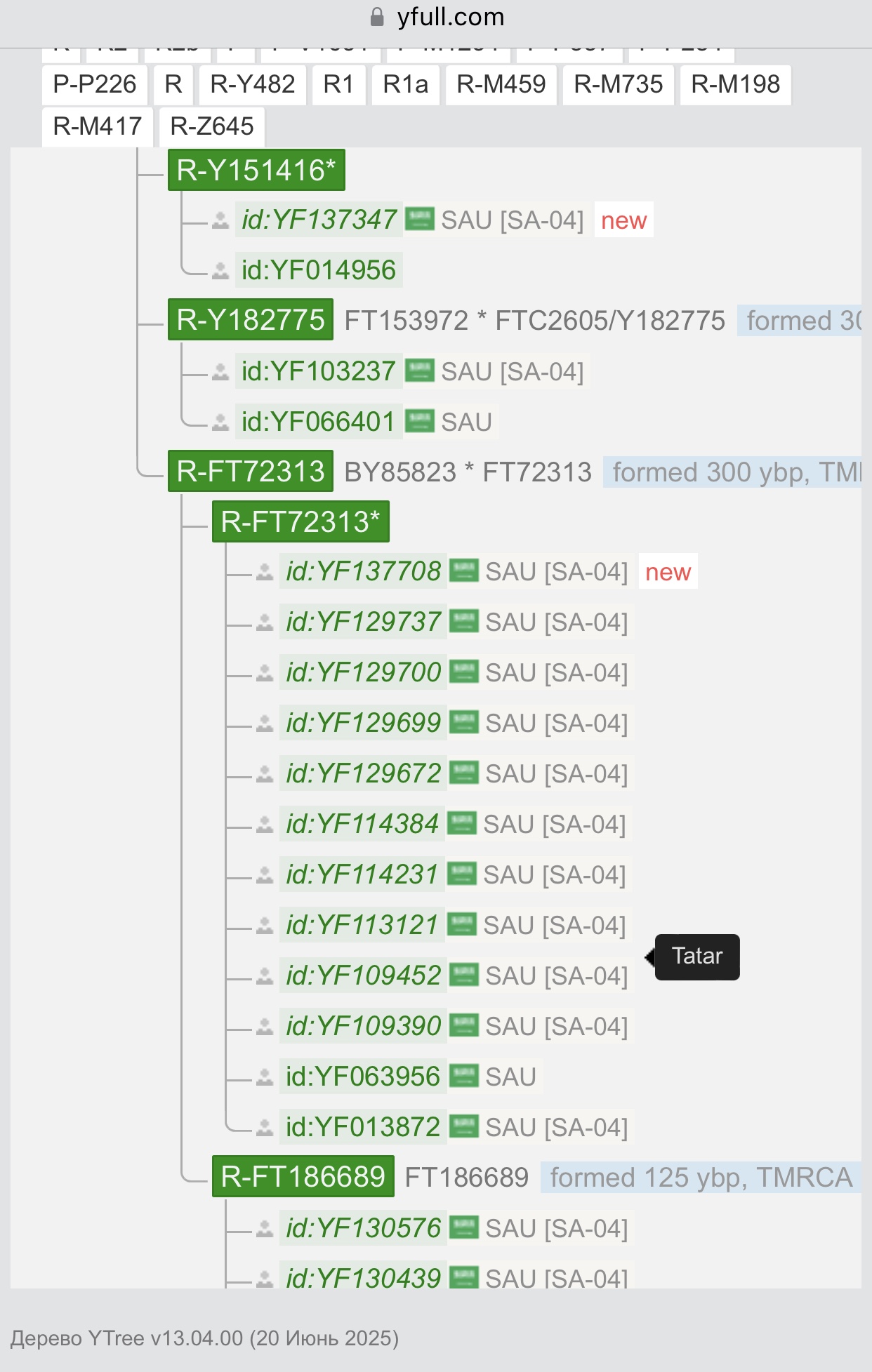 >>997634 По крайней мере хоть на какую-то глубину субклад узнать стоит, особенно если не R1a в Восточной Европе, например, теории о прямой отцовской линии это может поменять координально. Когда как обычный условный уровень гаплогруппы идёт на десятки тысяч лет (повторюсь, на самом деле всё субклады, вопрос только в возрасте, все мы от одного из субкладов гаплы A. И я вот только от CT с вами разделился)