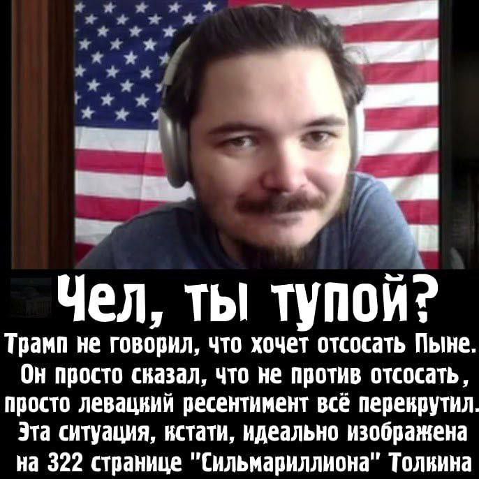 тотальное ШУЕ ППШ, что Марго считает всех порваков, которые против украины, проплачивает Россия, позиция до переобувочки, которая буквально звучала как "товарищ Трамп ничего не знал, в партию пробрались враги", и еще естественно считает всех правых, кроме себя естественно, на самом деле криптолеваками. Вот нахуя правительству РФ сдался Варг, чтобы ему прям так заносить, чтобы он неприятные Куку вещи про Украину говорил.