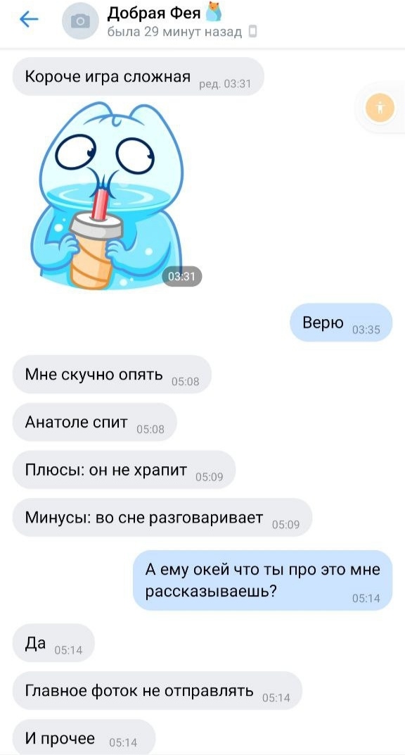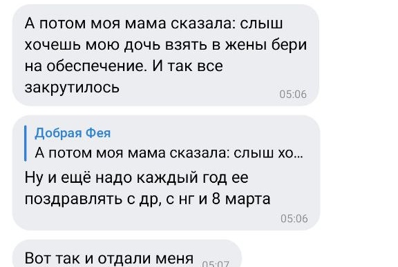 "Блеееен, она спела мне песню Доры... Это моя будущая жИна, мать моих 105 заморышей! Надо окольцевать чтобы никто не увëл! Это моя судьба!" Мальчик Толя, 26 лет (на тот момент).