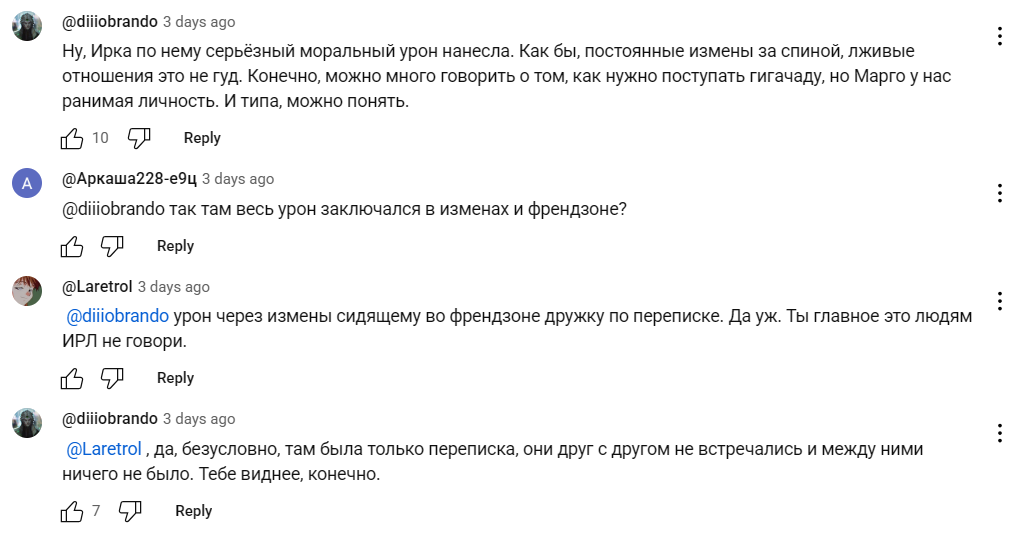 >>1015654 Ну, кстати, он и раньше на эту тему высказывался. Вот, например, "Родители должны находить невесту", " Я не буду платить за гремлиншу". По-моему, вся его карьера после того как он начал реакции на видео делать–это во всём, что не касается философии и лингвистики " очень ценная экспертиза".
