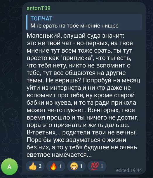 дура прибежала в группу плешивого и начала угрожать админу, болодя в курсе, что у него тут нет ресурса и поддержки здесь? совсем мозги архангельской пропил
