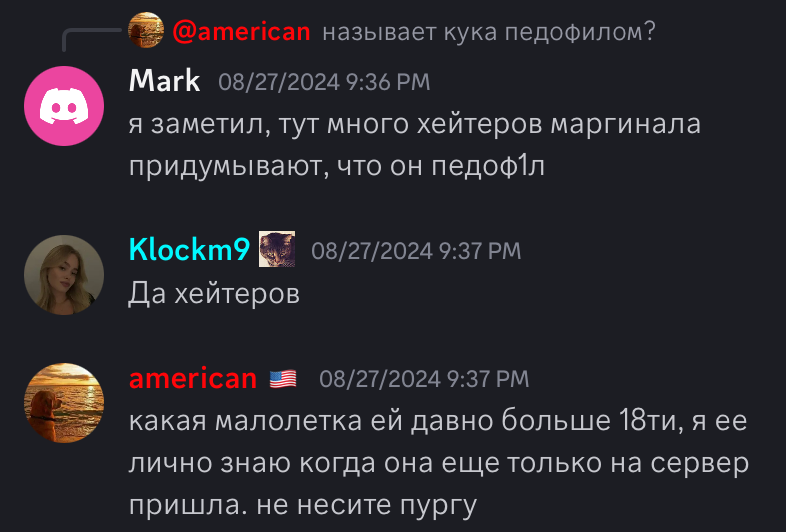 Прийти на стрим с овер 1к онлайном и визжать "ЙА ДЕВУШКА МАРГИНАЛА" это не скрытно, слабоумная подпедочурка. Форситься в тг и дискорде с одобрением админов это не скртный форс, слабоумная подпедочурка. Выкладывать фотки во всеобщее обозрение это не скртный форс, слабоумная подпедочурка. Заставлять подососов клепать хайлайты про ДЕВУШКУ МАРГИНАЛА это не скртный форс, слабоумная подпедочурка.