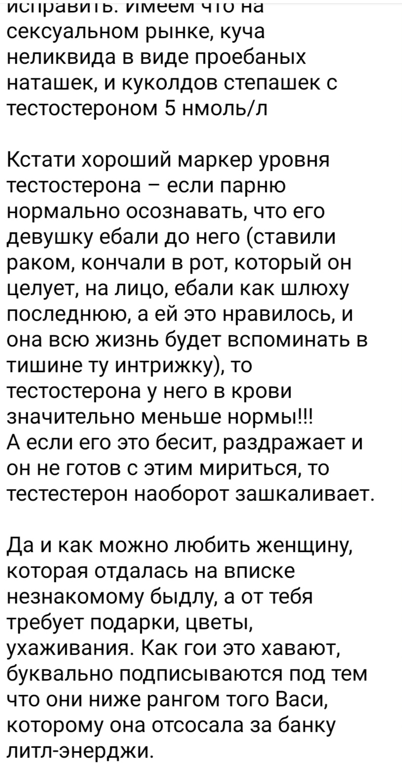 >>1038201 Ну в принципе разъёб. После шпица жепой чуял, что Куколд не живет с родителями, а теперь на 99% уверен, что там есть шлюха. Особенно видос с флагом на стене от шлюхи убеждает. Думаю, тактика Куколда не палить шлюху на большую аудиторию, потому что у него травма от истории с Иркой и чтобы родителям шлюхи под дверь не насрали. Но по мелочи он ей сливать не запрещает или даже поощряет, так как можно отмахнуться, отмолчаться и отшутиться. И да, Куколду пизда. Нет ничего приятней, чем сидеть на шее у родителей, особенно когда стабильно капает дань с гоев на карту. Люди так живут до седых мудей. Но все мои родственники и знакомые, которые пытались купить своим скудным богатством такого плана шаболду, закончили разорёнными и морально выпотрошенными. Лучше уж нариком и алкашом стать.
