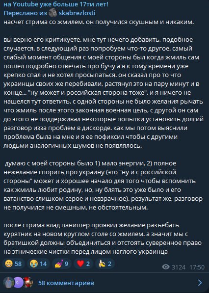 2) Аудитория может ныть "Как можна с зетником руснявым, который на ВС РФ собирает, стримить?". А так он бескомпромиссный заукраинец.С тëщей и зятем из полиции российской, правда, но в остальном...