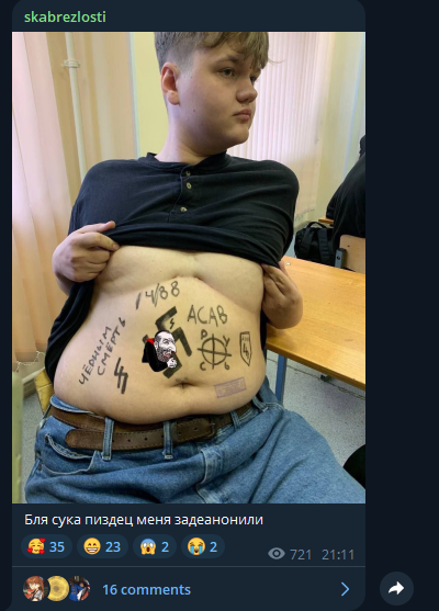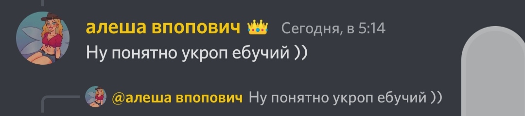>>1051731 Они же посрались, федос как обычно ни в чём себе не отказывал и называл станка пидорахой, хуесосом, свиньёй, и далее по списку. А станок же чсвшный шопиздец, он в ответ накатал у себя на канале какой-то нервный текст в духе "МАЛЮТКА МАЛЮТКА НУ ШО ТЫ БОМБИШЬ МАЛЮТКА", очевидно в спешке.