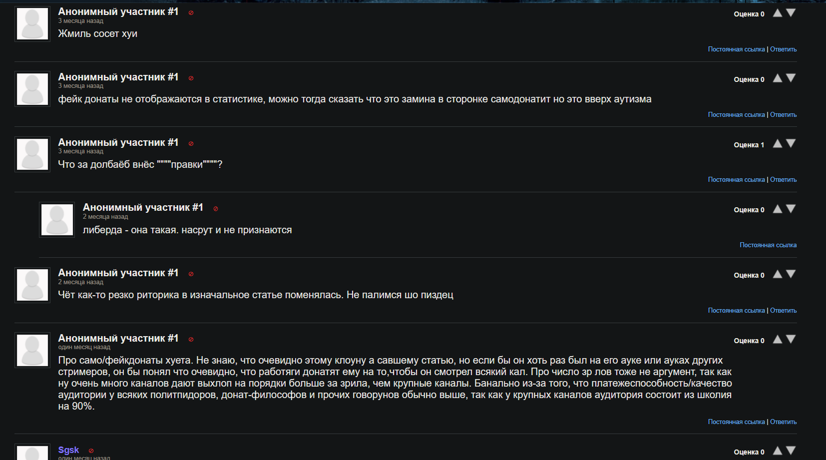 Но опять же, даже чтоб предъявлять по этим темам нужен ну хотя бы средний уровень интеллекта. Кретин со 120 подписчиками будет обсираться в любом случае, что бы он ни говорил, ибо слишком туп, чтобы сказать что-то осмысленное. Блять, до сих пор в голос с великих АРГУМЕНТОВ в его разоблачении.