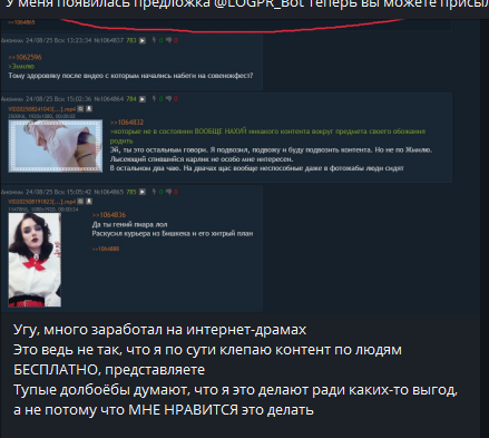 Грибы после дождя. Одну персону потерли на всей доске смотрим что удалили. Диалектика мистера K в тг писать про свою любовь к русским, симпить по нацболке, а на дваче рассказывать почему русских не существует.
