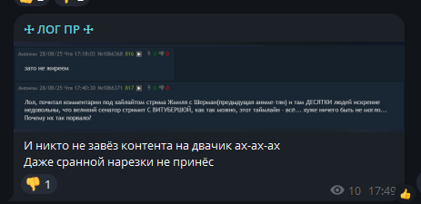 Лол, почитал комментарии под хайлайтом стрима Жмиля с Шерман(предыдущая аниме-тян) и там ДЕСЯТКИ людей искренне недовольны, что великий сенатор стримит С ВИТУБЕРШОЙ, как так можно, этот таймлайн - всё... хуже ничего быть не могло... Почему их так порвало?