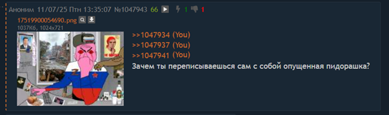 Но это как бы не исправляет ситуацию с Терпи47 который кроет релокантов и русофобов, Бесполезный так и остался либерахой который сидя в Питере поливает грязью Россию, а Хрю с новой силой начал высераться пока его Жмиль и Зио не опустят снова.